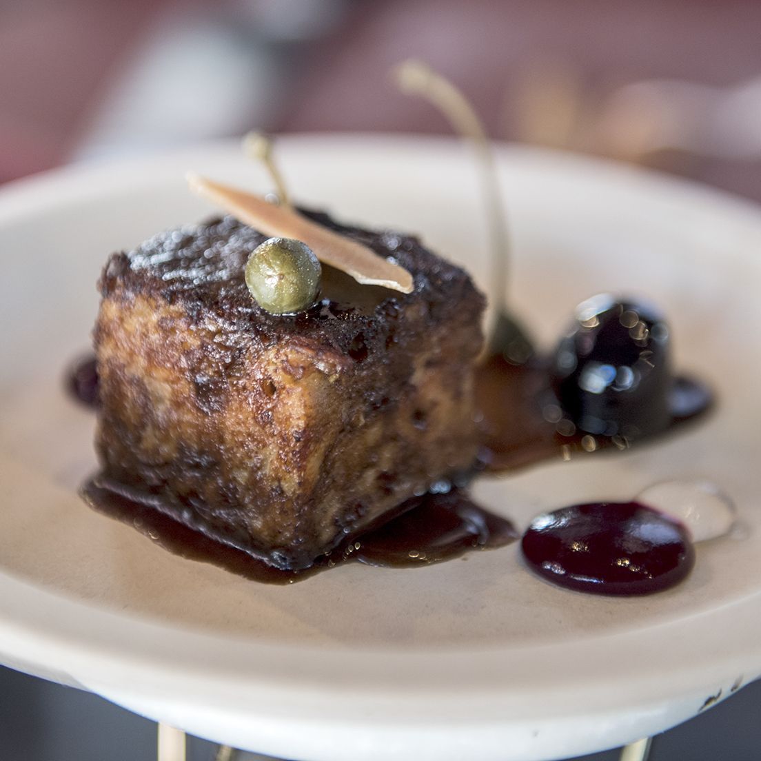 “Odettino”. Pa de brioix de galta de porc confitada amb salsa tàrtara